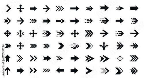 Vector Illustration of Diverse Arrow Icons Set, Directional Navigation Symbols on White Background