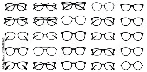 Vector illustration of diverse sunglasses silhouettes, featuring various styles from classic to modern, ideal for fashion, summer, and lifestyle-related graphic design projects.
