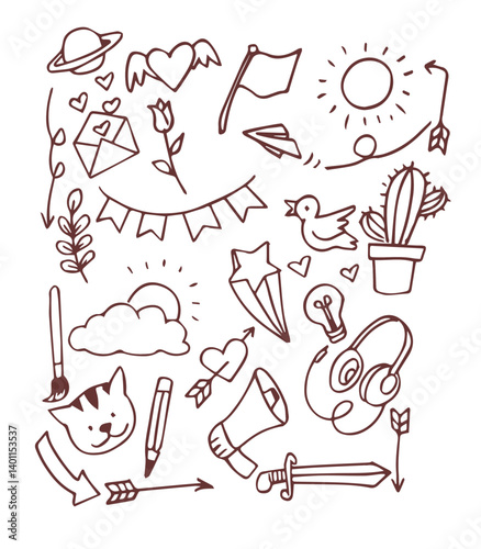 Vector illustration of Doodle cute for kid, Hand drawn set of cute doodles for decoration on white background.