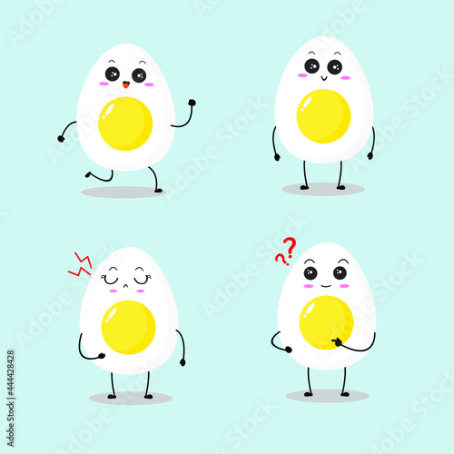 Vector illustration of egg character with various cute expression, easter egg isolated on white background, simple minimal style, boiled egg for mascot collection, emoticon