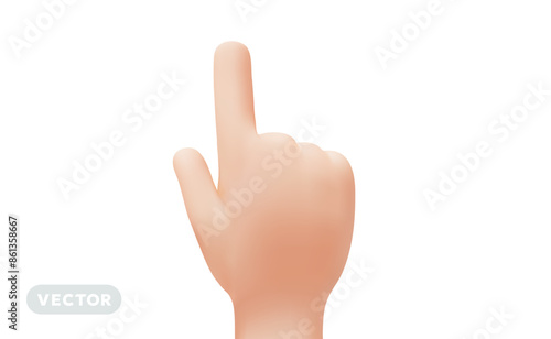 Vector illustration of finger up touch gesture male hand on white color background. 3d style design of man white skin hand forefinger up touch gesture