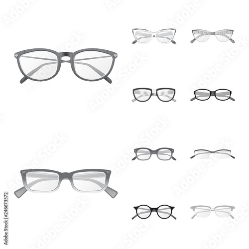 Vector illustration of glasses and frame logo. Set of glasses and accessory stock vector illustration.