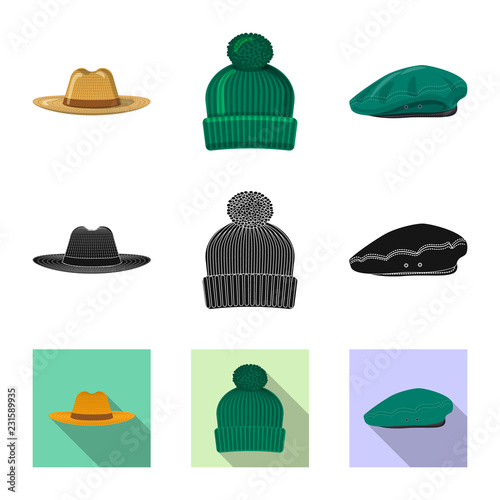 Vector illustration of headgear and cap symbol. Set of headgear and accessory stock vector illustration.
