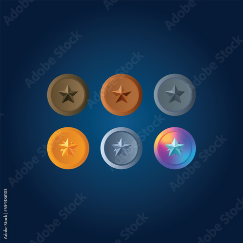 Vector illustration of icon game ranking medals, game user medals, rating, game rating, player rank.