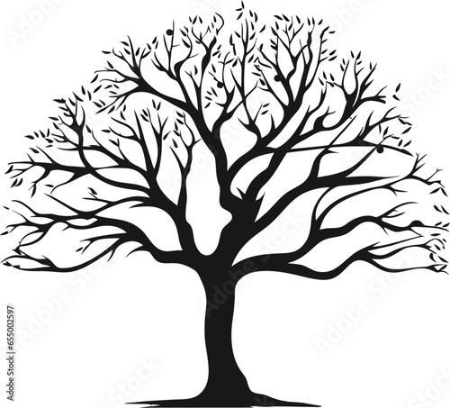 Vector illustration of isolated, realistic tree branch with leaves and two birds, in black color, on white background. Wall sticker.