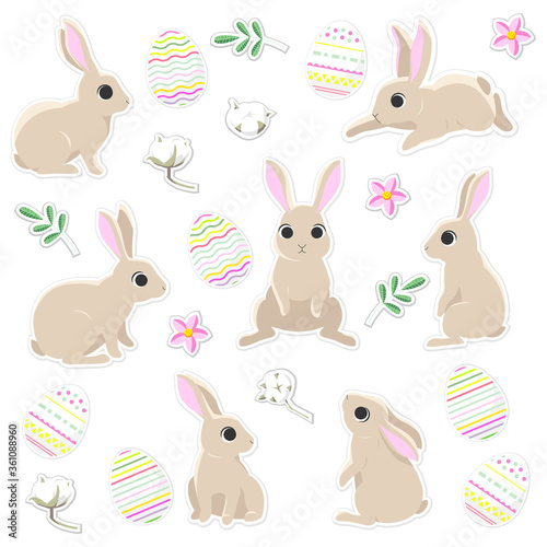 Vector illustration of little bunny for souvenir products: t-shirt, cups, card, invitation, banner template. EPS 10