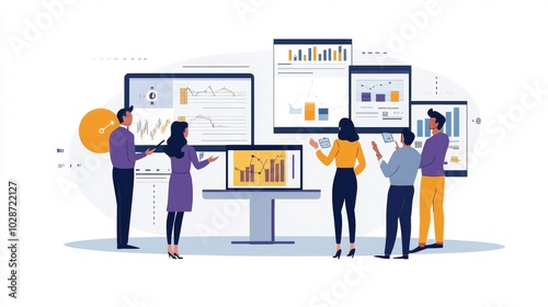 Vector illustration of office people: Coordinating digital marketing efforts for improved business performance