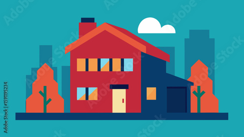 Vector illustration of residential house and city buildings, perfect for real estate and construction design