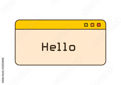 Vector illustration of retro computer window with hello message. Cute old desktop interface with text notification. 90s and y2k digital aesthetic. Vintage frame, box, panel for design