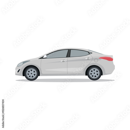 Vector illustration of single sedan in cartoon flat style. Compact sedan land vehicle in colorful with shadow. Modern technology of transportation. Luxury car in side view. Gasoline and electric car