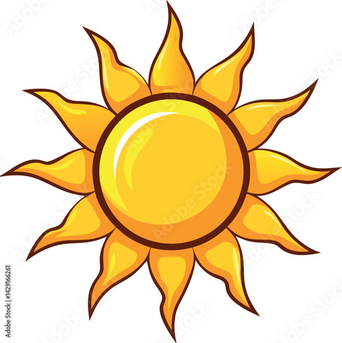 Vector Illustration of Sun with Stylized Rays – Radiant Sun Design for Weather Icons, Summer Projects, and Seasonal Graphic Elements