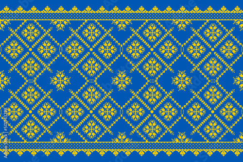 Vector illustration of Ukrainian folk seamless pattern ornament. Ethnic ornament. Border element. Traditional Ukrainian, Belarusian folk art knitted embroidery pattern - Vyshyvanka