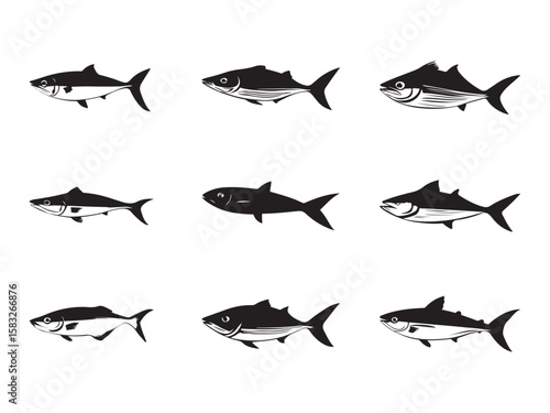 Vector Illustration of Various Fish Silhouettes