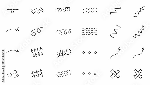 Vector illustration of various hand drawn doodle elements including arrows, swirls, zigzags, and geometric shapes