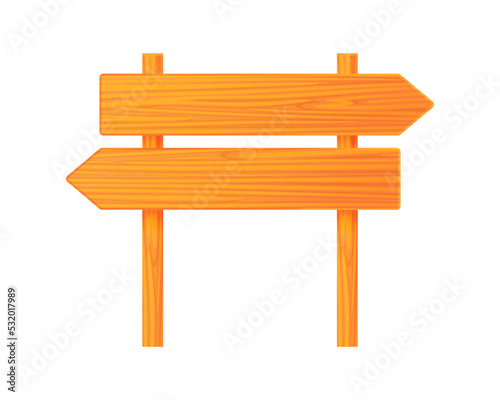 Vector illustration of wooden road sign isolated on white background. Brown wooden board icon in cartoon style. Realistic signpost. Empty wooden banner.