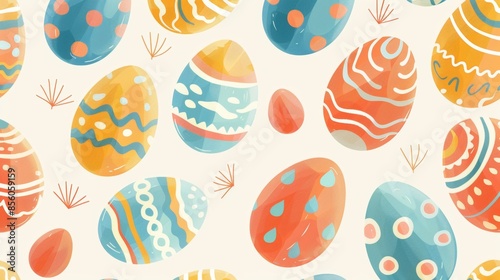 Vector illustration seamless background pattern of Easter eggs with various pattern designs.