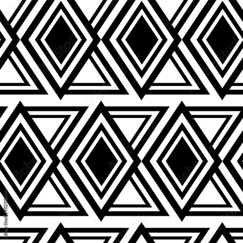 Vector Illustration. Seamless Polygonal Black White and Diamond Pattern. Geometric Abstract Background