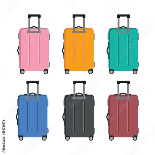 Vector illustration set yellow blue green pink suitcase different colors luggage for travel isolated on white background