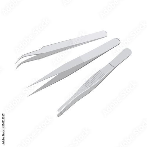 vector illustration, three types of tweezers, semi realistic flat cartoon design style. Editable graphic resources for many purposes.