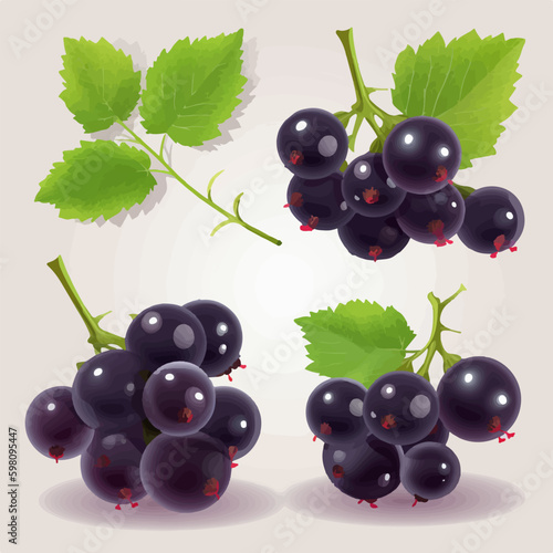 Vector illustrations of black currant plants with leaves