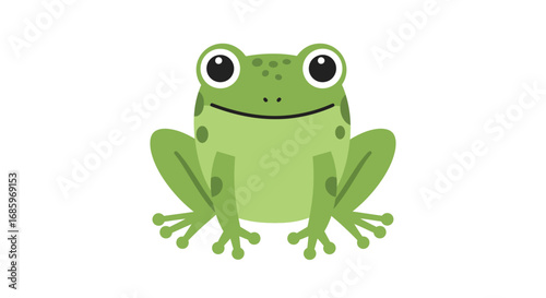 Vector Image of Cute Bright Green Cartoon Frog with Big Eyes Wide Mouth and Long Legs Isolated Illustration for Kids Print Mascot