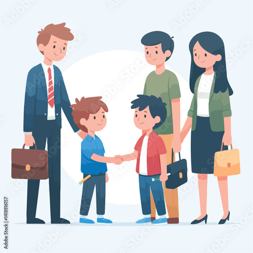 vector image of parents and small children greeting
