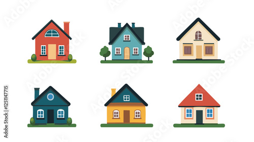 Vector Image Set of House Designs: Modern and Classic Architectural Styles
