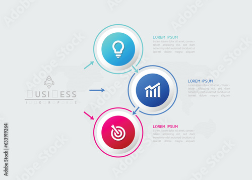Vector infographic business presentation template with circular interconnection with 3 options.