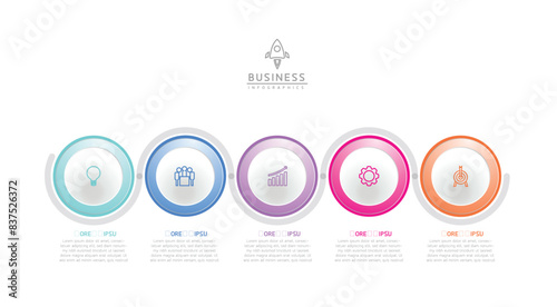 Vector infographic business presentation template with circular interconnection with 5 options.