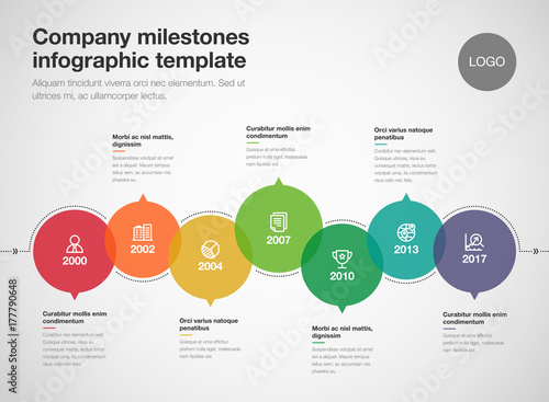 Vector infographic company milestones timeline template isolated on light background. Easy to use for your design.