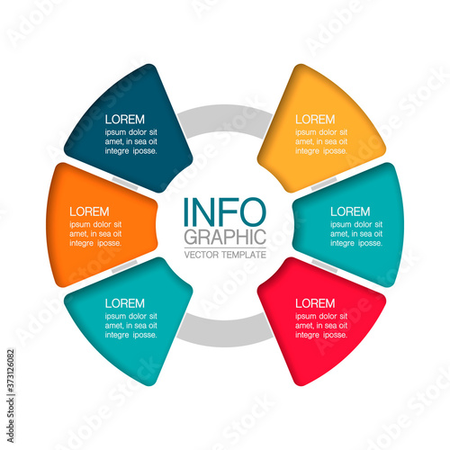 Vector infographic template, circle with 6 steps or options. Data presentation, business concept design for web, brochure, diagram.
