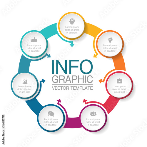 Vector infographic template, circle with 7 steps or options. Data presentation, business concept design for web, brochure, diagram.