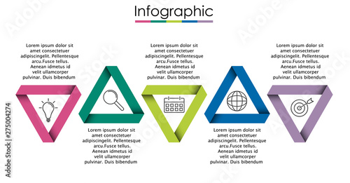 Vector infographic template with five steps or options. Illustration presentation with thin line elements icons. Business concept graphic design can be used for web, paper brochure, diagram