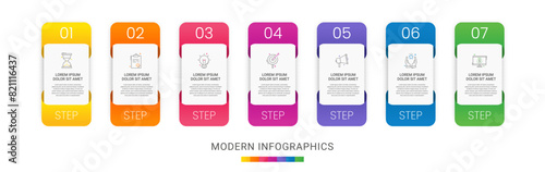 Vector infographics vertical rectangle with 7 data templates. Modern illustration Can be used for workflow layout, business steps, banners, web design, brochures, presentation