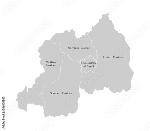 Vector isolated illustration of simplified administrative map of Rwanda. Grey silhouettes, white outline