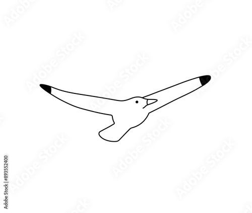 Vector isolated one single simple flying seagull colorless black and white contour line easy drawing