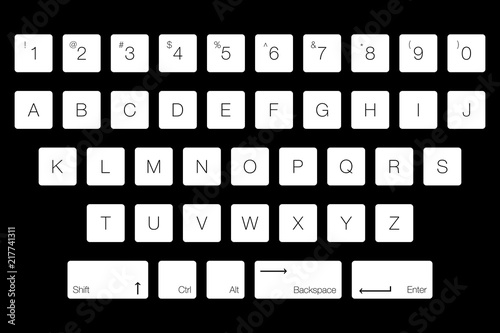 Vector Keyboard Computer Letter Keys. Isolated White Buttons in Alphabetical Order