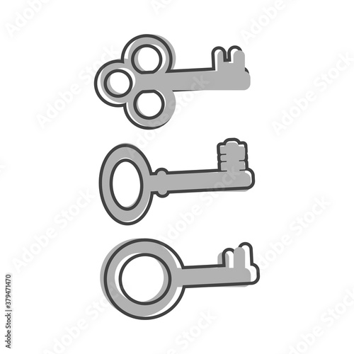 Vector keys icon. Set of vintage keys cartoon style on white isolated background.