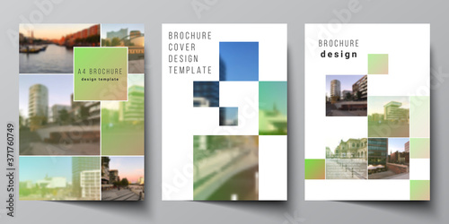 Vector layout of A4 cover mockups design templates for brochure, flyer layout, booklet, cover design, book design, brochure cover. Abstract project with clipping mask green squares for your photo.