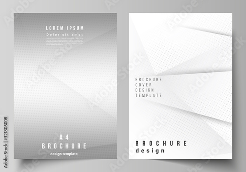 Vector layout of A4 cover mockups design templates for brochure, flyer layout, cover design, book design, brochure cover. Halftone dotted background with gray dots, abstract gradient background.