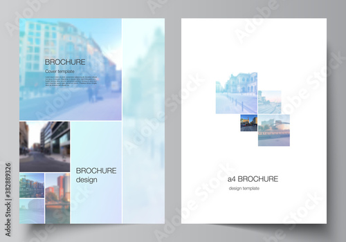 Vector layout of A4 format cover mockups templates for brochure, flyer layout, booklet, cover design, book design, brochure cover. Abstract design project in geometric style with blue squares.