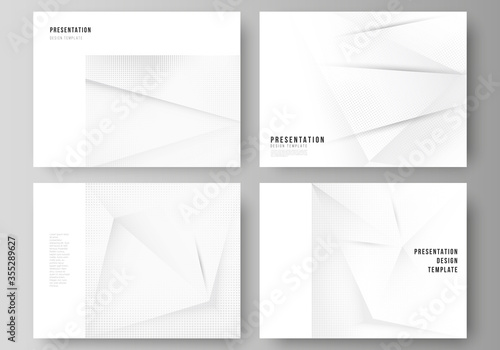 Vector layout of the presentation slides design templates, multipurpose template for presentation brochure, brochure cover. Halftone dotted background with gray dots, abstract gradient background