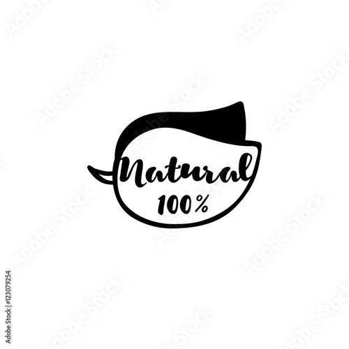 Vector leaf with lettering: natural 100 percent.