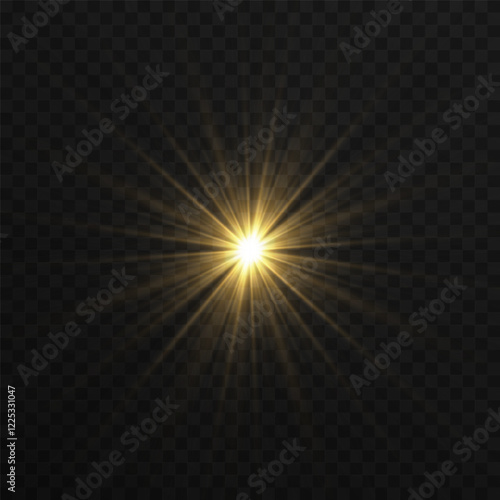 Vector light on isolated transparent background. Sun, rays of light png. Magic glow, golden light png.