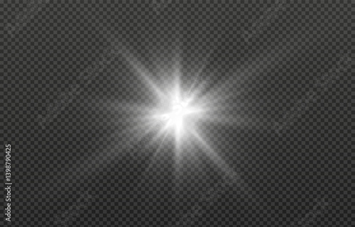 Vector light on isolated transparent background. Sun, rays of light png. Magic glow, golden light png.