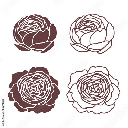 Vector line color handdrawn illustration set with stylized decorative Roses flowers. Isolated on white background