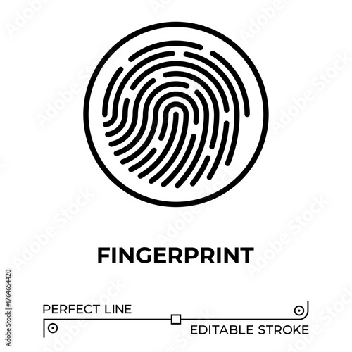 Vector line icon related to fingerprint. Perfect Line. Editable Stroke.