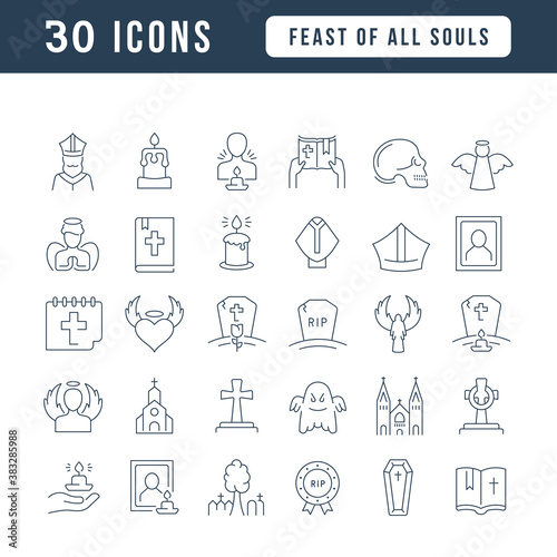 Vector Line Icons of Feast of All Souls