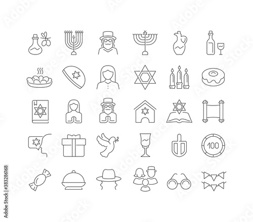 Vector Line Icons of Hanukkah