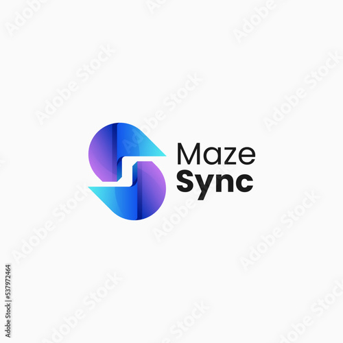 Vector Logo Illustration Maze Sync Gradient Colorful Style